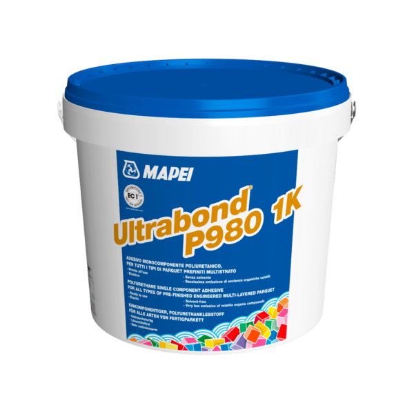 ULTRABOND P 980 1K is a  one-component polyurethane adhesive, completely free of solvents , amines and epoxy resins, with very low emission of volatile organic compounds (EMICODE EC1 R Plus). It is produced according to the technology developed in the MAPEI laboratories, and is used  for bonding  pre-finished multi-layer wooden parquet, pre-assembled planks,  multi-layer elements of any size and type on any type of substrate . ULTRABOND P 980 1K is particularly  suitable for heated substrates . Furthermore, it is odorless, free of solvents and free amines, therefore  it can also be used by installers who are allergic  to epoxy-polyurethane products.